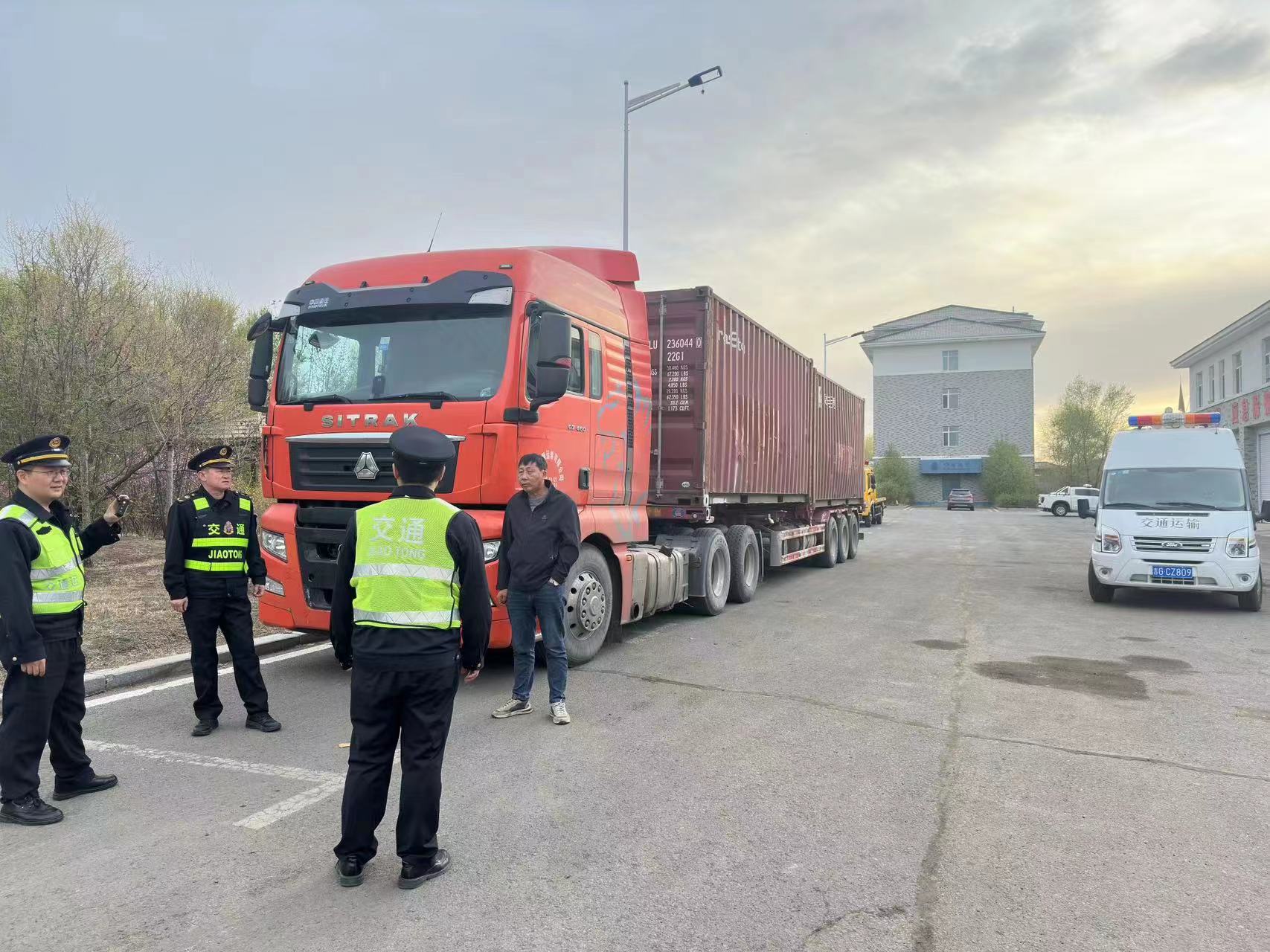 综合行政执法局白城分局和吉林省高速公路交警总队白城支队4月16日在白城南高速口开展了突击检查。